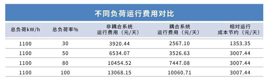 按照11月負(fù)荷率30%,12月負(fù)荷率50%,1月負(fù)荷率100%,若使用鍋爐+空氣能耦合供熱系統(tǒng),采暖季約節(jié)約